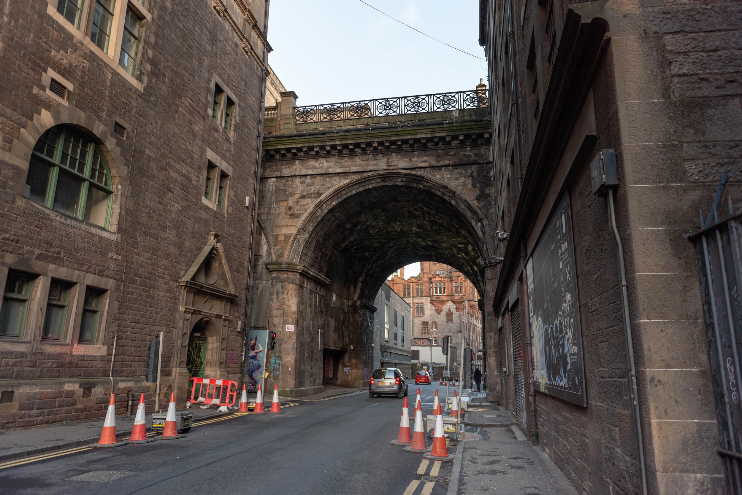 Walking beneath the bridges of Cowgate, capturing the Old Town’s character.