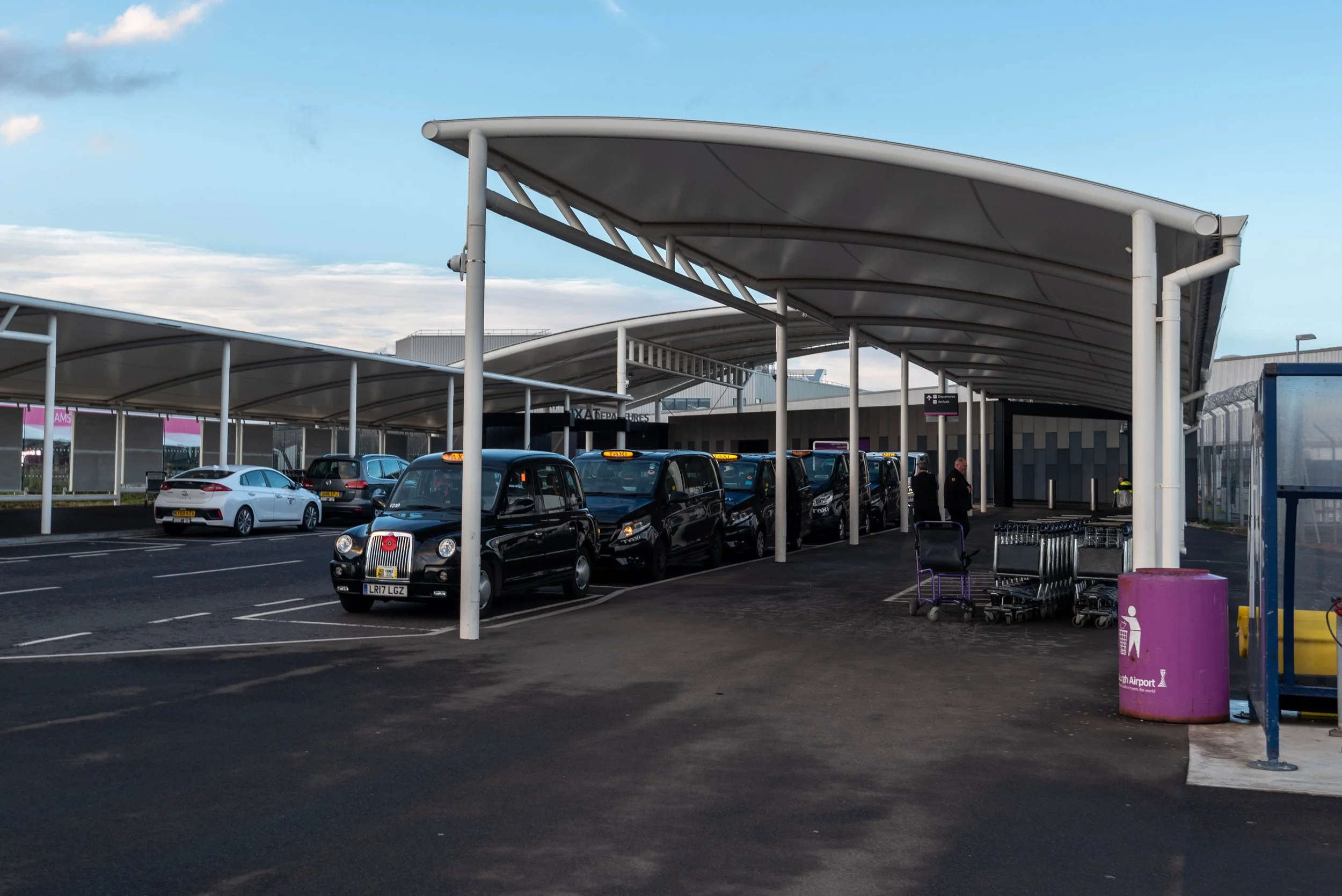 You can pre-book with companies like City Cabs, Central Taxis or Capital Cars. If you’ve pre-booked, go to the Pick-Up & Drop-Off Zone on the ground floor of the multi-storey car park, which is shown in teal on the airport map. Large signs point the way, but make sure you go behind the metal barriers to reach the actual pickup spot.